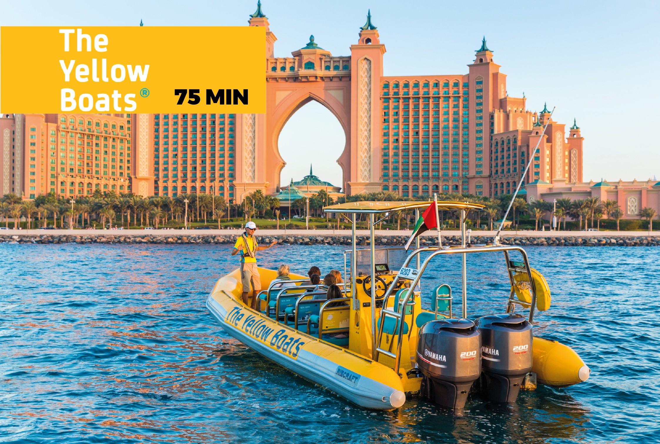 En tu viaje a Dubái no te puedes perder el paseo en barco que te llevará alrededor del puerto deportivo, la isla artificial Palm Jumeirah y los lujosos hoteles Atlantis y Burj Al Arab.
