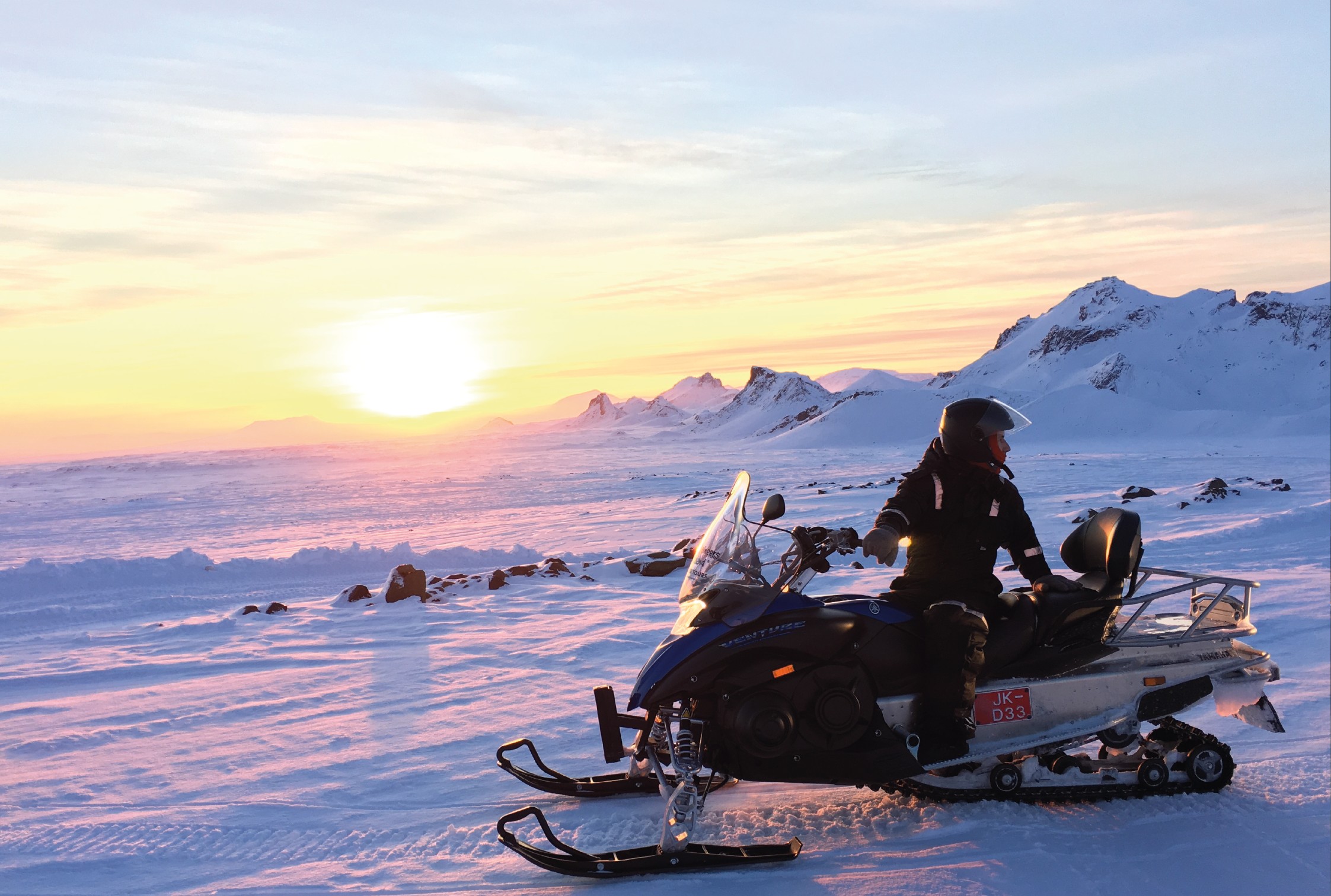 El tour comienza desde Reykjavík, te dirigirás a Húsafell, uno de los destinos más turísticos de Islandia y un paraje natural de extraordinaria belleza. Si miras a lo alto verás el glaciar Langjökull, pero tranquilo, este recorrido no es a pie, sino que es un tour sobre moto de nieve. Esta experiencia te permitirá deslizarte sobre el gran manto de nieve y admirar un paisaje tan bello como inhóspito.